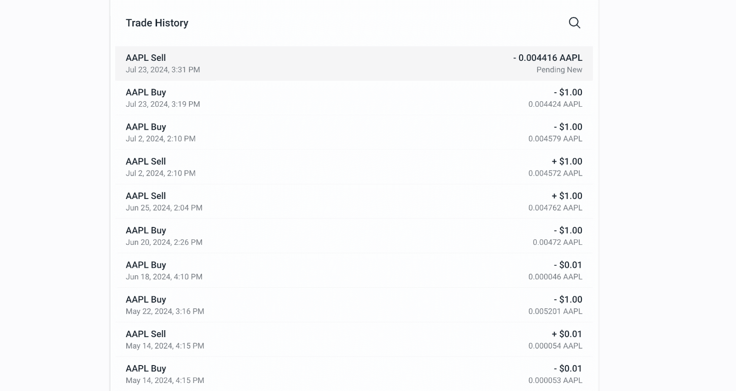 To review your order, scroll down your page to the "Trade History" section. The most recent order will show the initiated sell order of the stock you just sold, and its approximate value. The order status will be "Pending" and should be completed within one business day.