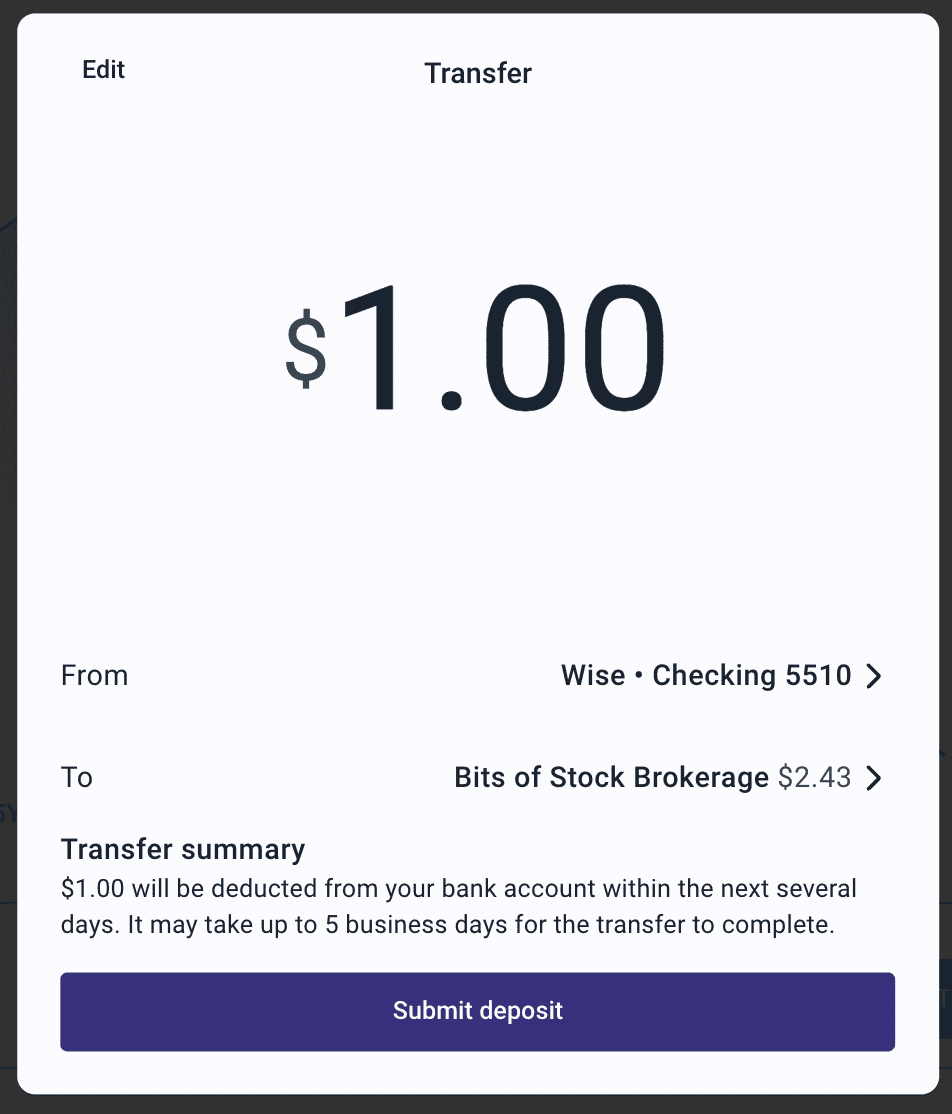 Watch our detailed educational video to learn how to deposit money using our new transfer flow. In this tutorial, we'll walk you through each step of the process, from linking your bank account to confirming your deposit. Our expert guide will ensure you understand every detail, providing helpful tips along the way to make your experience seamless and secure. Whether you're new to investing or a seasoned pro, this video will equip you with the knowledge you need to efficiently manage your deposits. Start watching now and take the first step towards enhancing your investment portfolio!